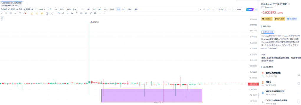 ● 该指数衡量的是Coinbase上的比特币价格相较全球市场均价的偏离程度。当指数为负时,意味着美国市场上的比特币价格持续低于全球均价,表明美国专业投资者不仅没有抄底,反而在持续减仓。