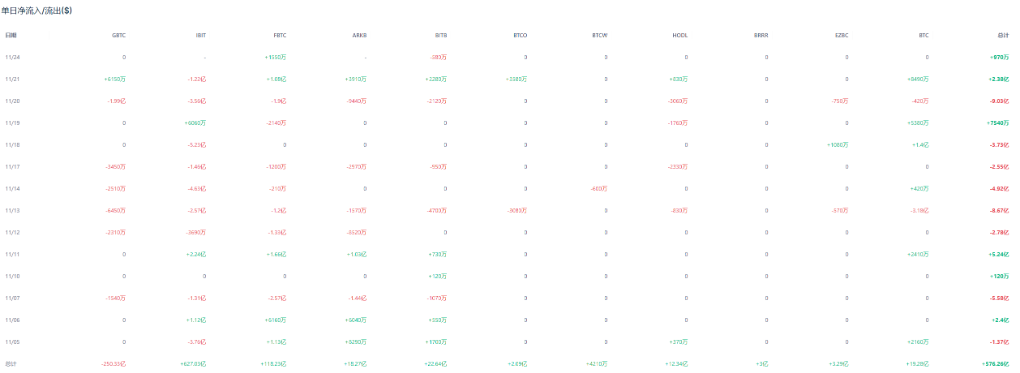 ● ETF资金流出放缓至单日净流出降至1亿美元以下时,可能意味着抛压接近尾声;