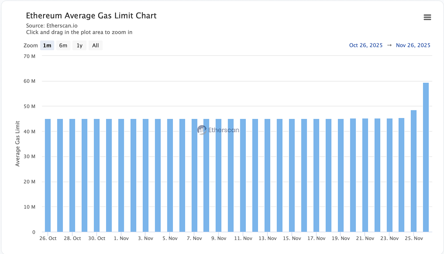 这一改动使得即使提升整体 Gas Limit,区块整体字节大小不会无节制膨胀,从而为提高 Gas 上限腾出了安全余量 。换言之,协议层主动收紧了数据层面的开销,确保 「计算量翻倍,区块大小不翻倍」,为后来将 Gas 上限从 3000 万提高到 6000 万奠定了基础 。