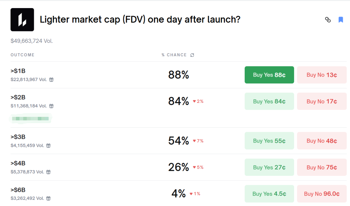 FDV 超 20 亿美元概率 84%